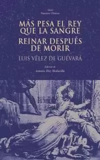 La producción dramática de Luis Vélez de Guevara (1578-1644) podría convertirse, tanto por su cantidad como por su calidad, en un foco de atracción para el estudio de nuestro teatro áureo. La aproximación a su obra que supone esta edición pone de manifiesto algunos de los valores que podrían caracterizarla. La reconstrucción en Más pesa el Rey que la sangre de la heroica defensa de Tarifa por parte de Guzmán el Bueno, tema de amplia tradición y pervivencia en nuestro ámbito cultural, permite a Vélez de Guevara una reflexión, interesada, acerca de la primacía del vasallaje al rey y del cumplimiento de deber por parte de sus súbditos, por encima de cualquier otro sentimiento. En Reinar después de morir, utilizando el también conocido tema de los amores trágicos de Inés de Castro y don Pedro de Portugal, presenta la fuerza de la razón de Estado como motor del fatum que empuja a los protagonistas.